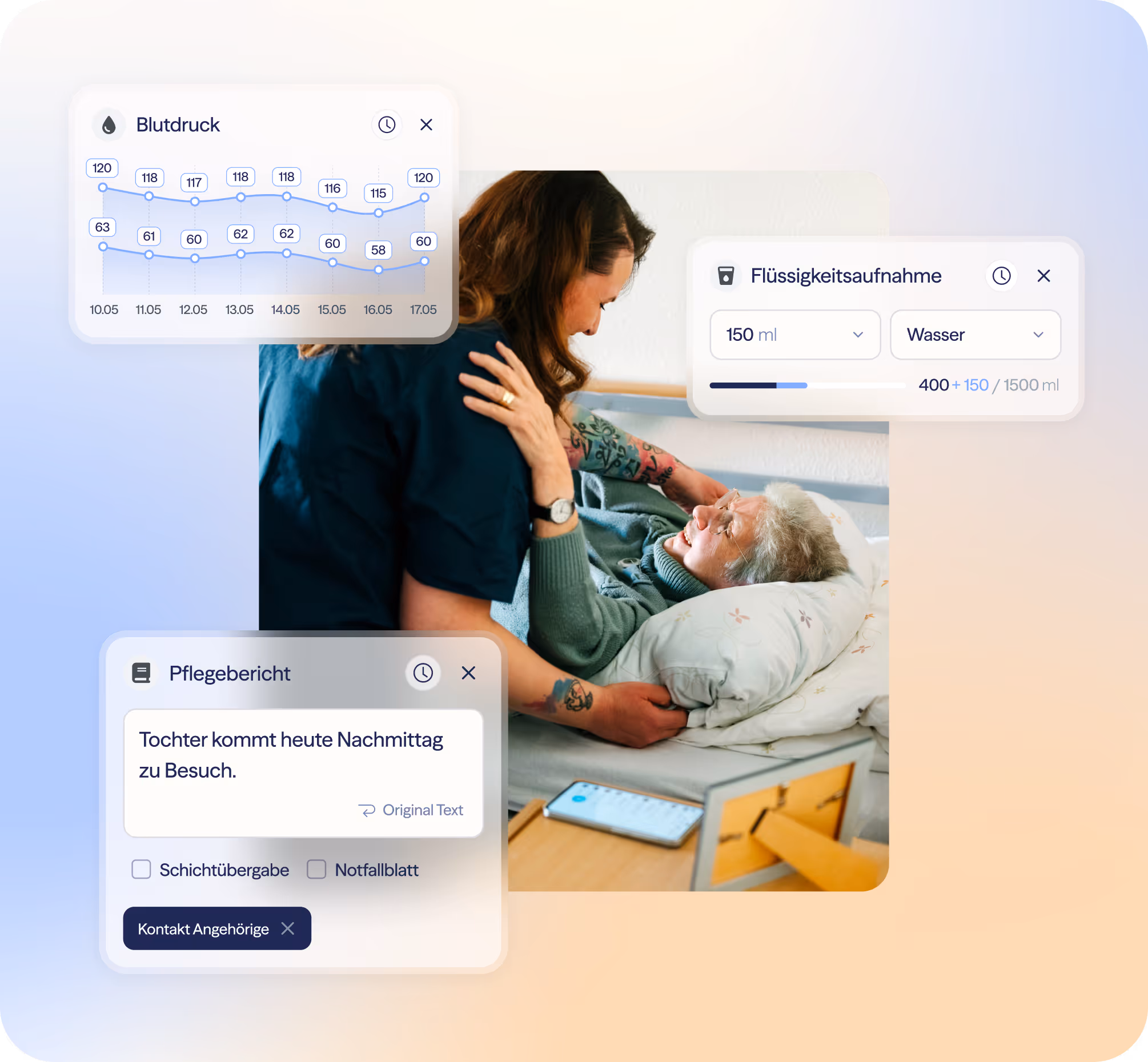 - Strukturierte Einschätzungen (Schmerz, Mobilisation, Wunddokumentation, Sturzprotokoll)