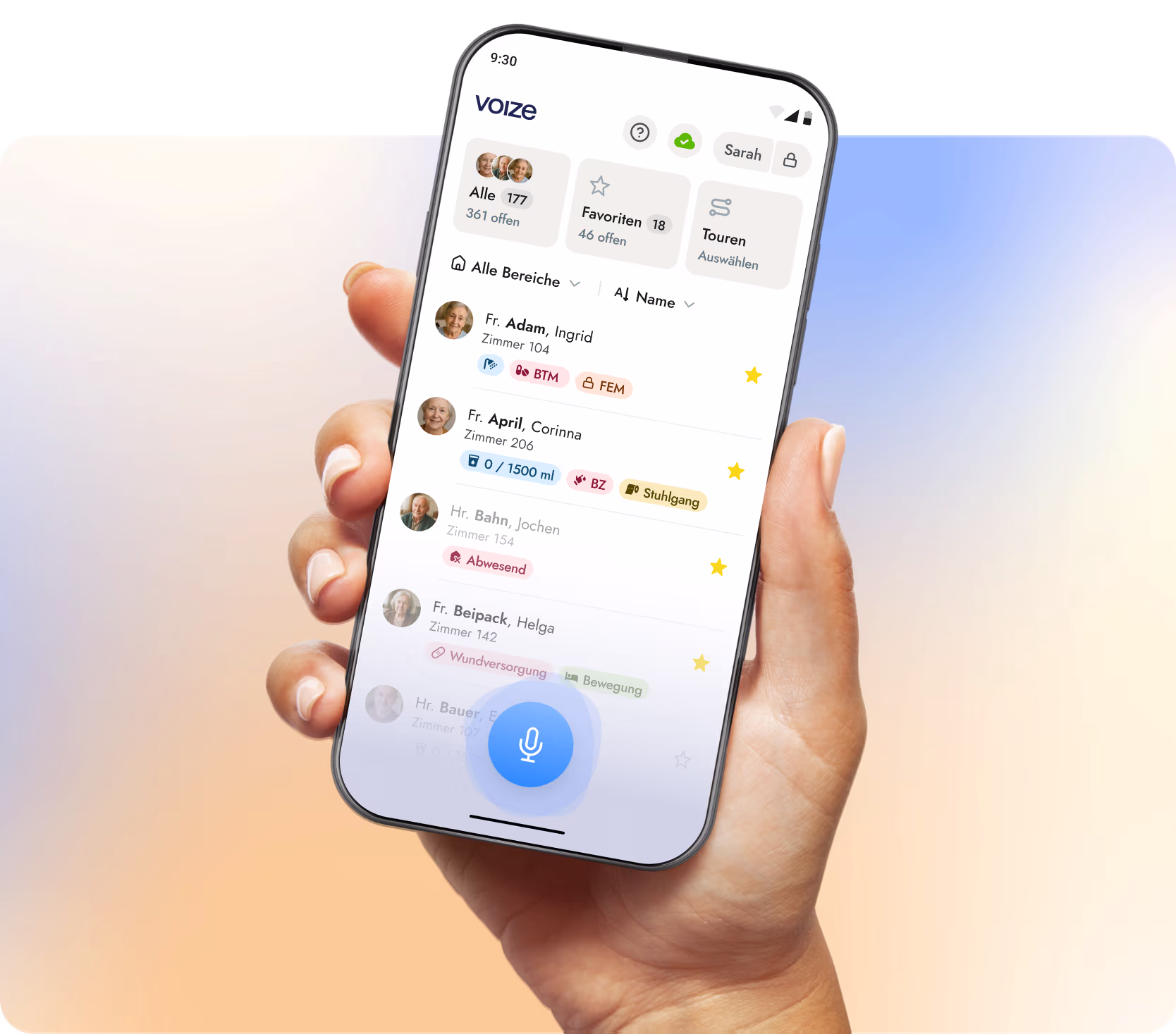 voize unterstützt alle zentralen Pflegedokumentationsaufgaben per Sprache: